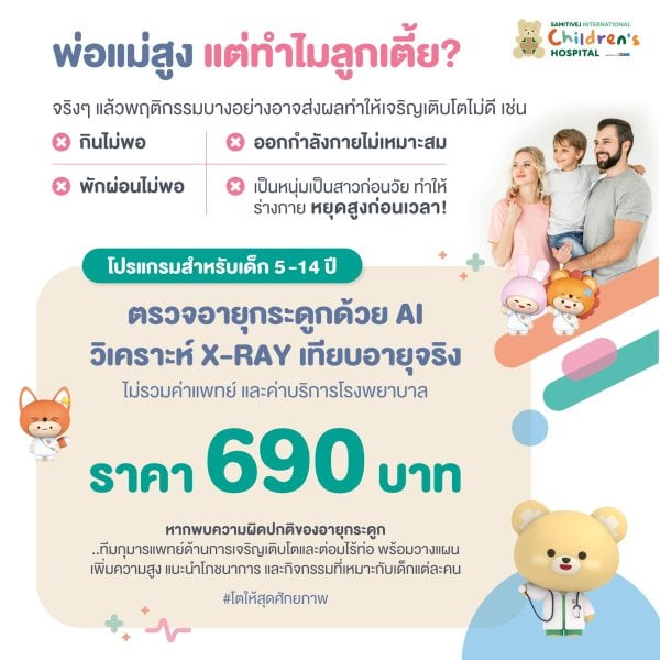 ตรวจคัดกรองโรคอ้วนเมตาบอลิก 13 รายการ รับเพิ่มโปรแกรมตรวจอายุกระดูกด้วย AI สำหรับเด็กตั้งแต่อายุ 5 ปี สมิติเวช สุขุมวิท