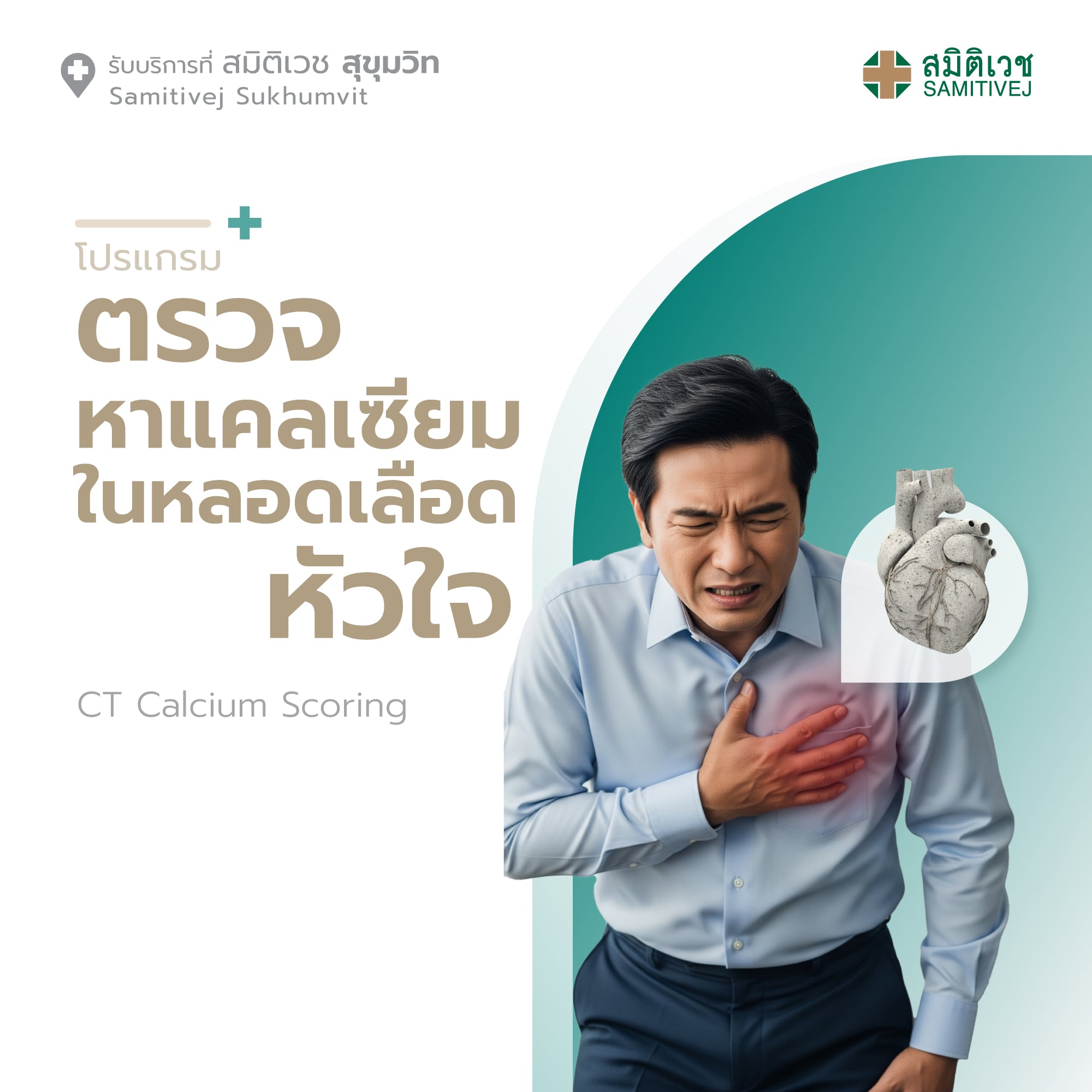 โปรแกรมตรวจคราบหินปูนในหลอดเลือดหัวใจด้วยเครื่องเอกซเรย์คอมพิวเตอร์ เพื่อคัดกรองโรคหลอดเลือดหัวใจตีบ (CT Calcium Scoring) สมิติเวช สุขุมวิท